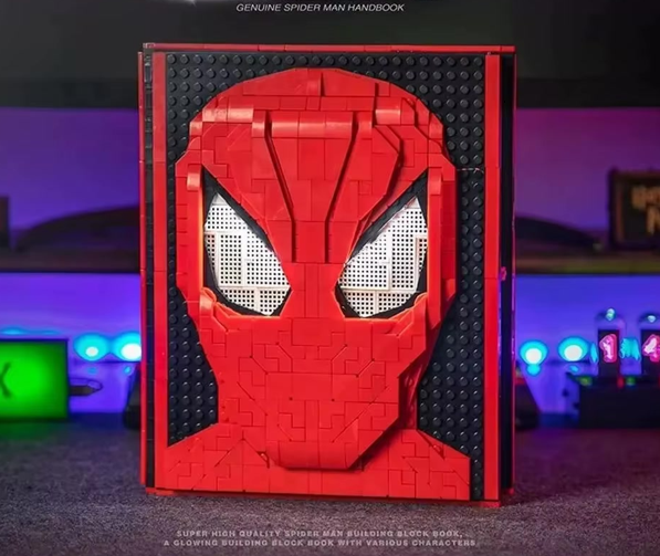 Featuring a 3D mask on the front cover that lights up, this collectible book opens to a full wall of suits, perfect for fans who want their own mini Heroes.